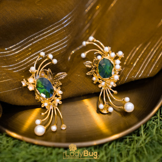 Emerald & Crystal Butterfly Stud Earrings with Pearl Accent | Luxury Statement Earrings