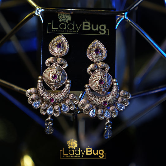 Big Kundan earrings with Teeka in Ruby color lb346