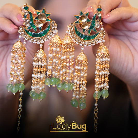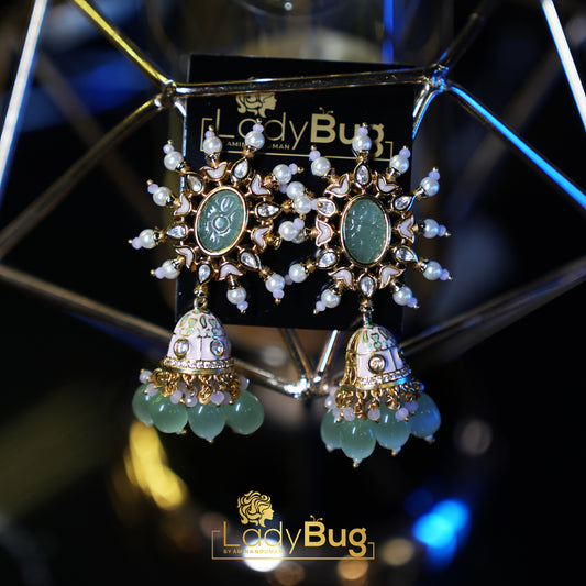 Tyaani Kundan Jhumka earrings in mint color (LB-255)
