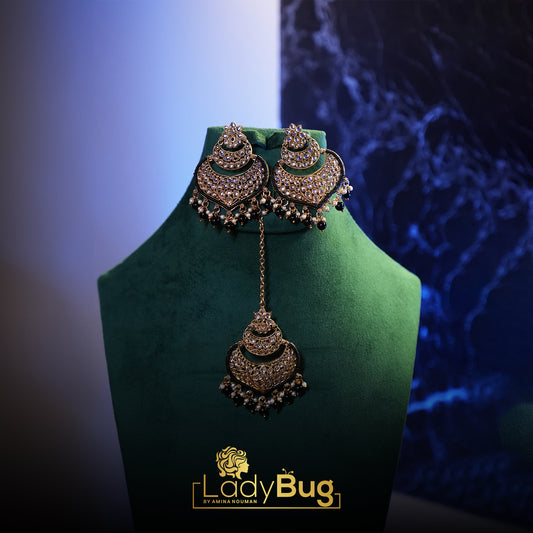 Big Kundan earrings with teeka in black color