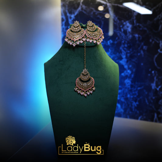Big Kundan earrings with Teeka in Pink color