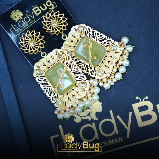 White and lemon yellow Stone Gujra Earrings with Matte polish LB -414,413