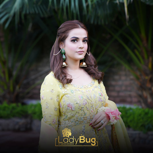 Meena Jhumkey with Champagne Stone & Emerald Color