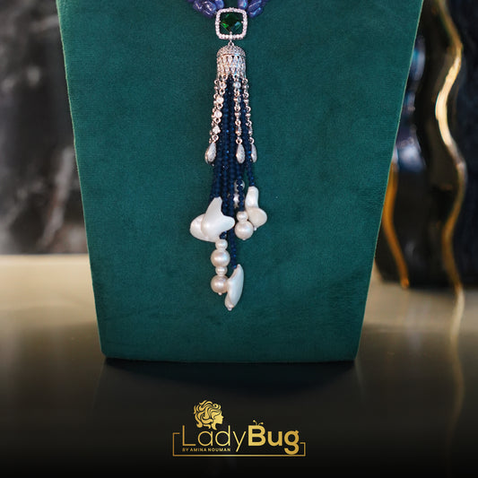 Sapphire Long Mala with Baroque Stone (LB-650)