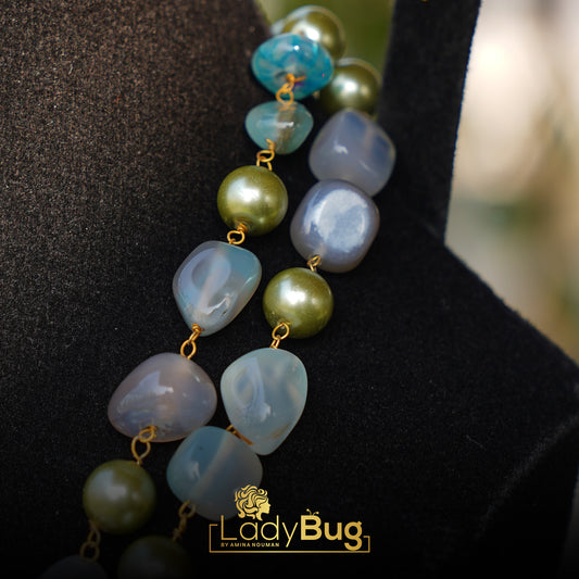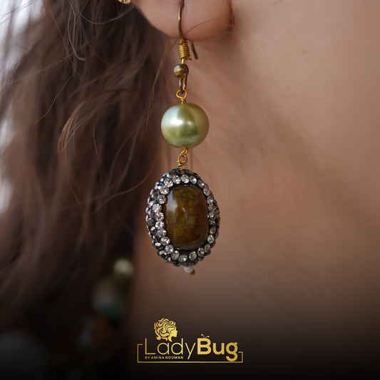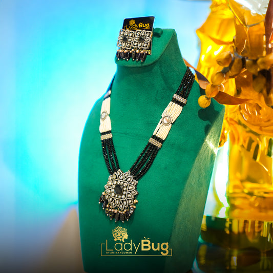 Victorian Polish Mala and Earrings with Emerald Stones LB-562,LB-563
