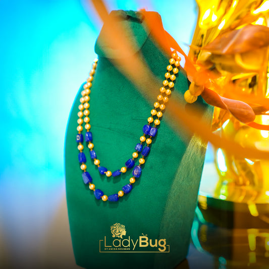 Sapphire Mala with Pearls, Double Layers (LB-542)