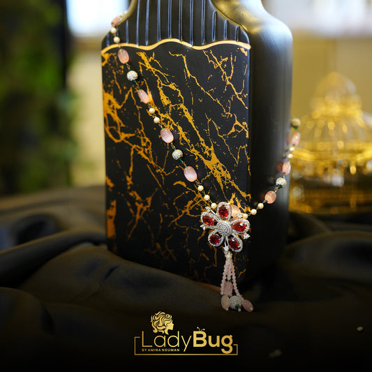 Mala Set with Big Ruby Stone Broach and Ice Blue Pearls lb 861