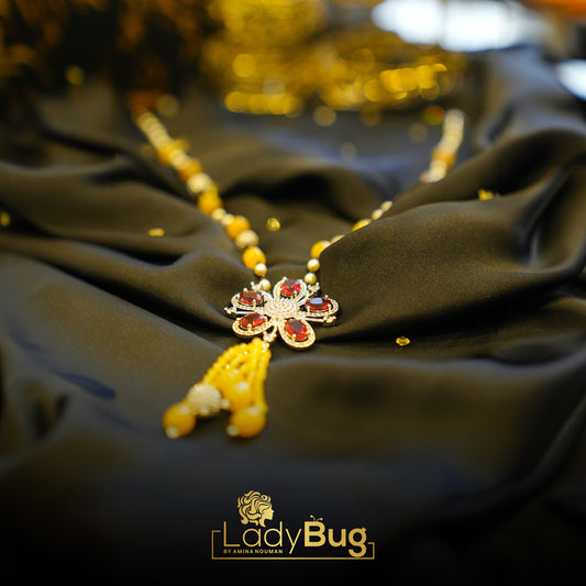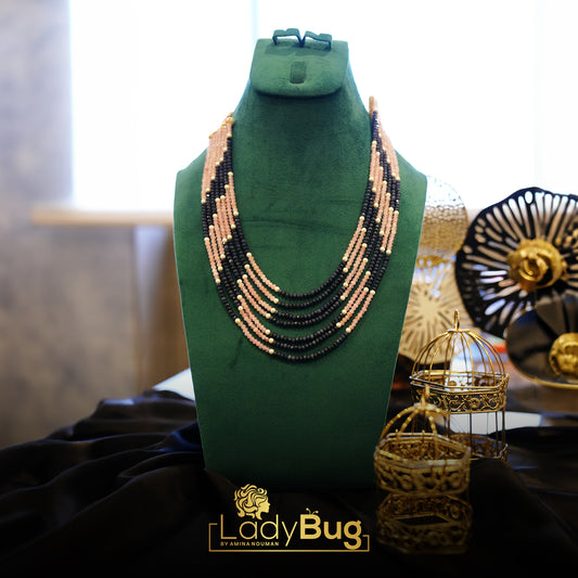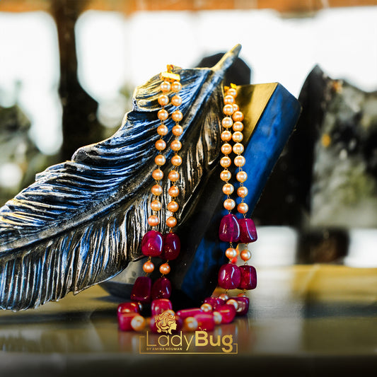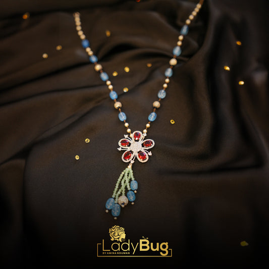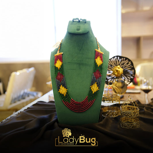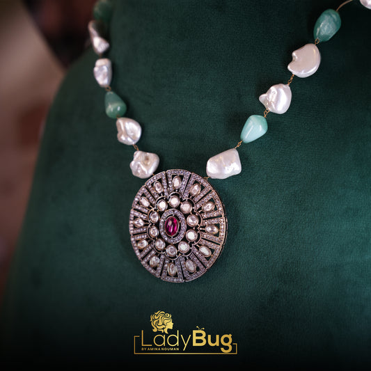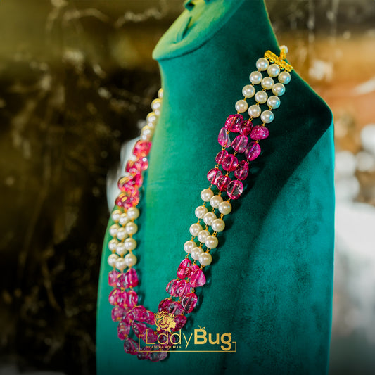 Rubi and Emerald Stones Mala with White Pearls LB-233