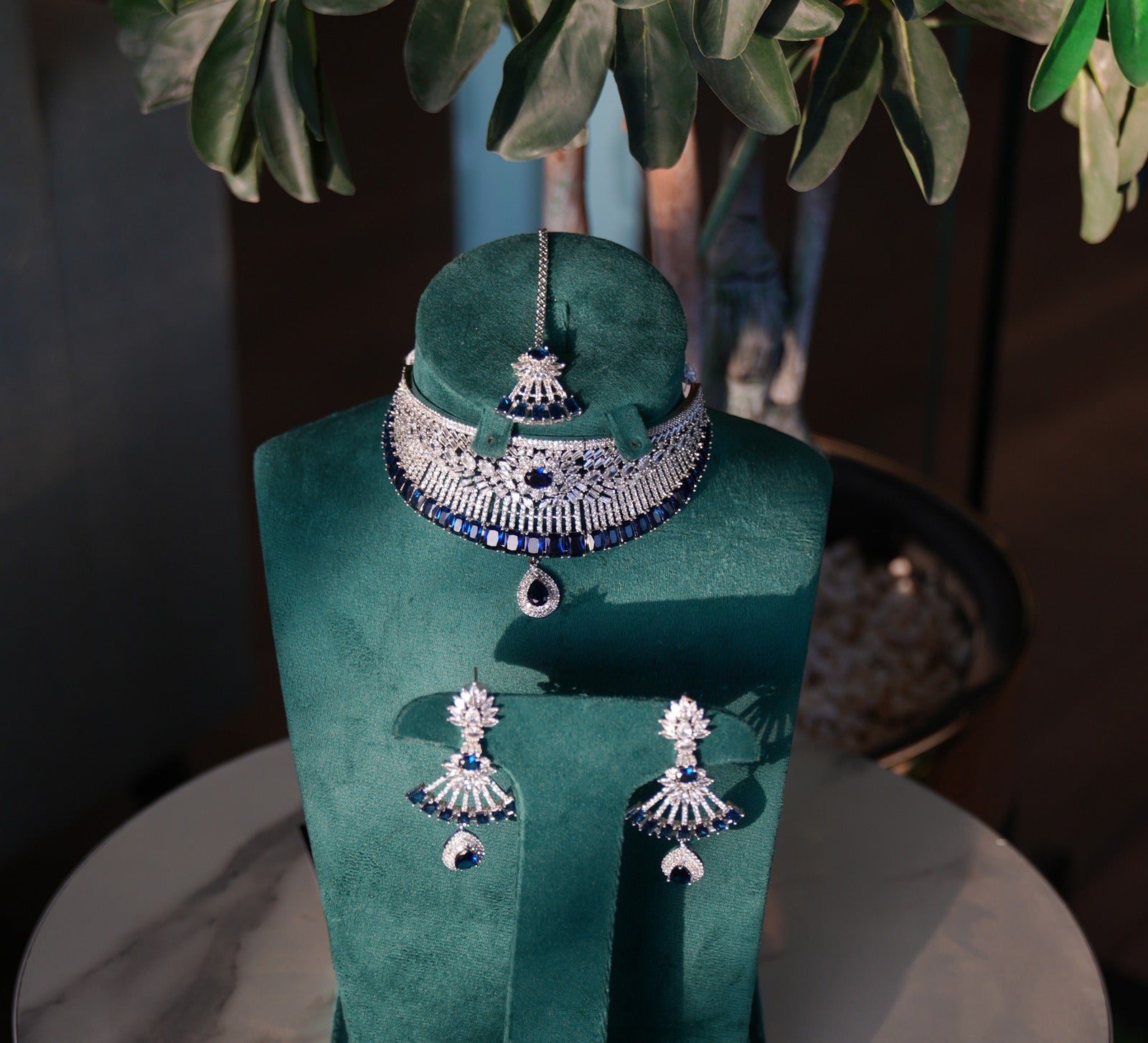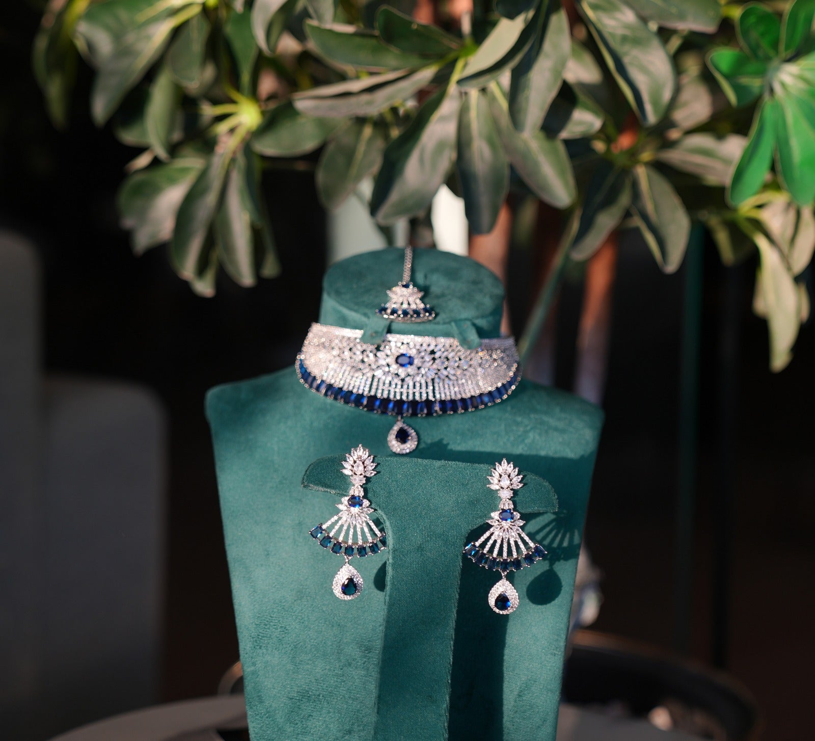 Rhodium-plated set with high-quality Swarovski Stones and Sapphire
